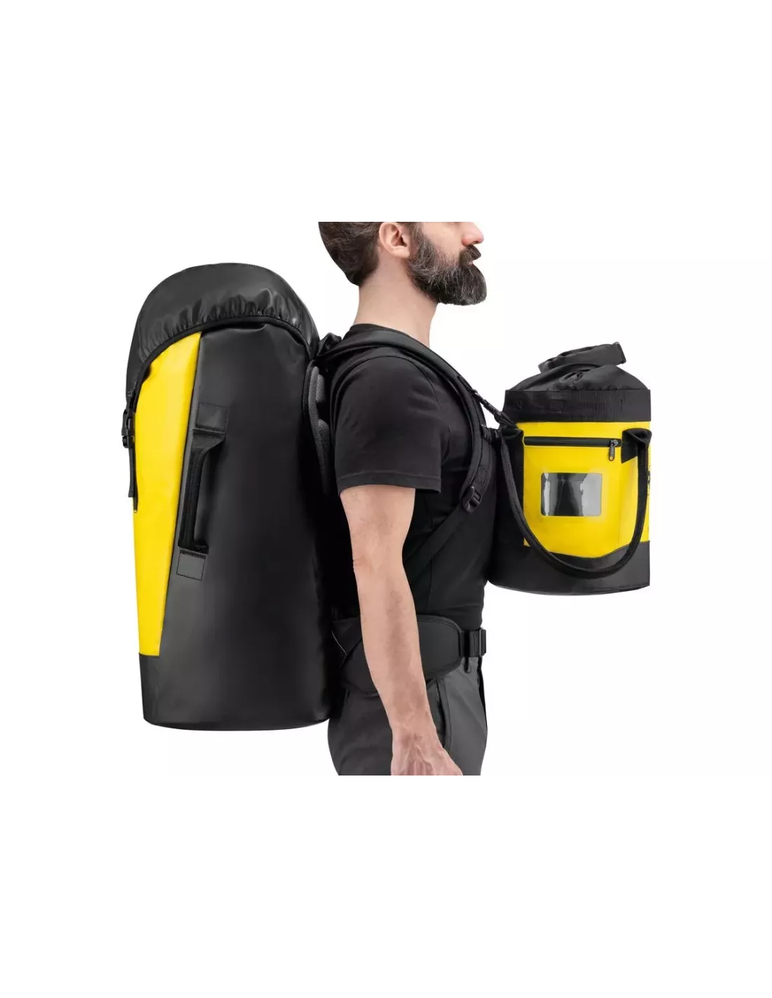 - BUCKET rope bag can be connected to the shoulder straps and carried in front