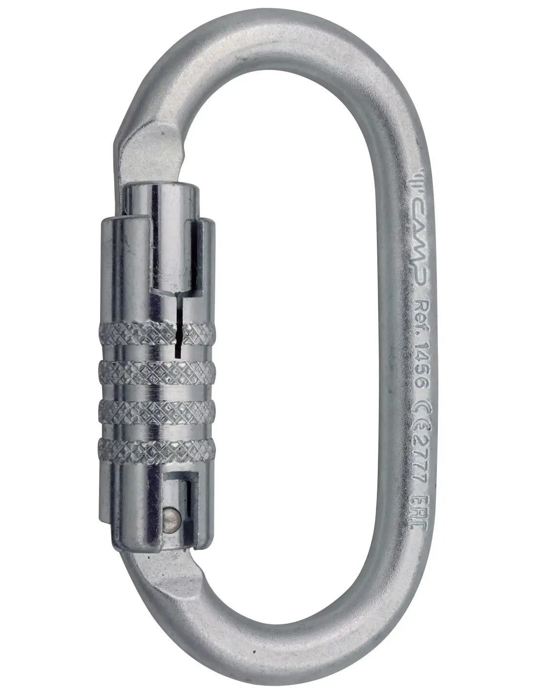 High strength steel carabiner. The oval shape is ideal for use with pulleys, descenders and ascenders.