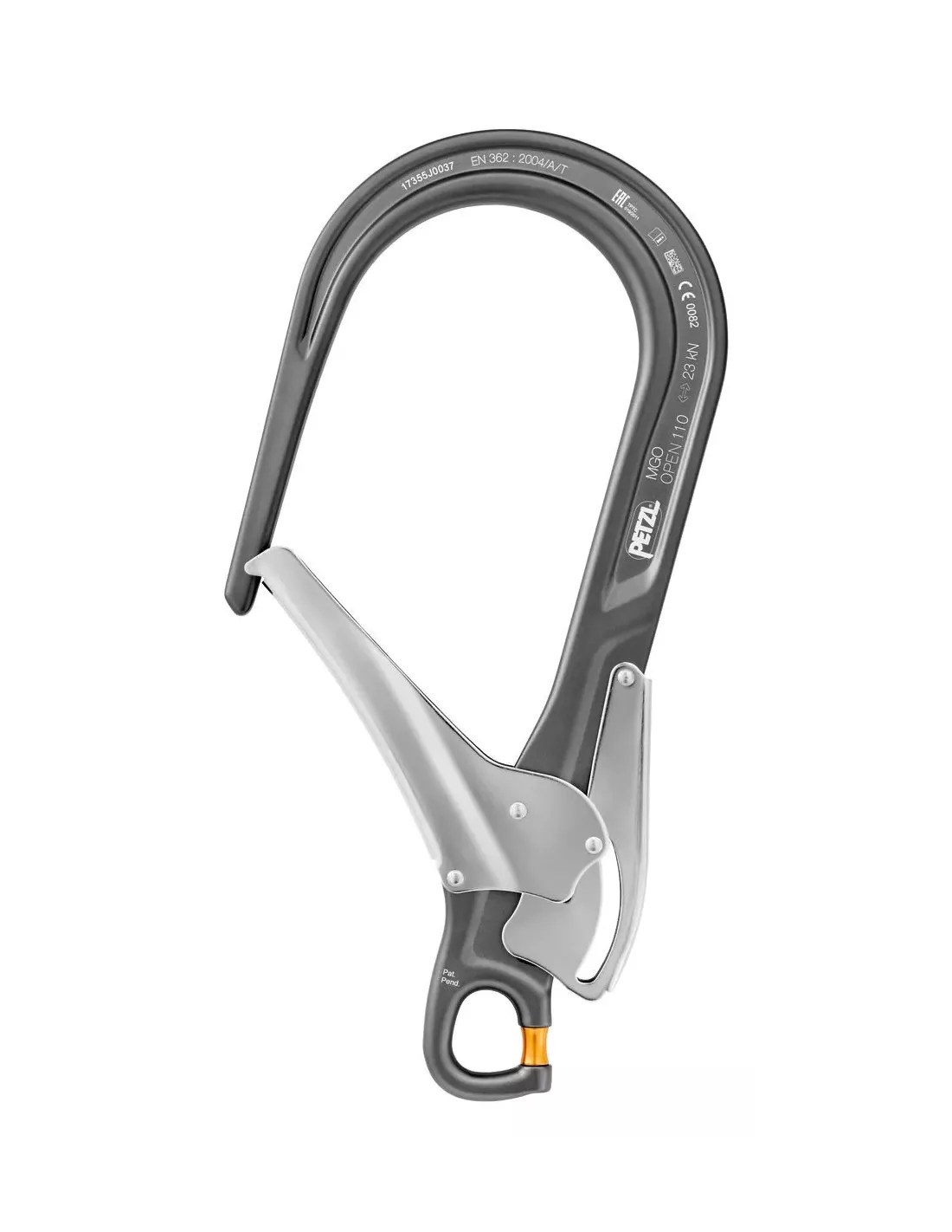 - Gated connection point allows the MGO OPEN to be directly installed at the end of ABSORBICA-I, ABSORBICA-Y, JANE, PROGRESS or PROGRESS ADJUST-type double lanyards and GRILLON-type work positioning lanyards. If the lanyard is damaged, the connector can thus be reused