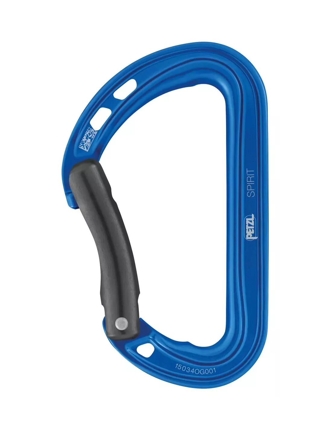 The Petzl Spirit carabiner is the benchmark for sport climbing and working routes. Bent and straight gate designs are optimized for different uses. The Keylock system prevents the carabiner from snagging when clipping and unclipping. Its standard size doesn’t compromise on weight; in fact, its excellent weight-to-performance ratio means you can take it with you on different types of terrain like single pitch, multi-pitch, alpine rock, or ice. Available in two versions: straight gate or bent gate. The bent gate version is available in six colors.