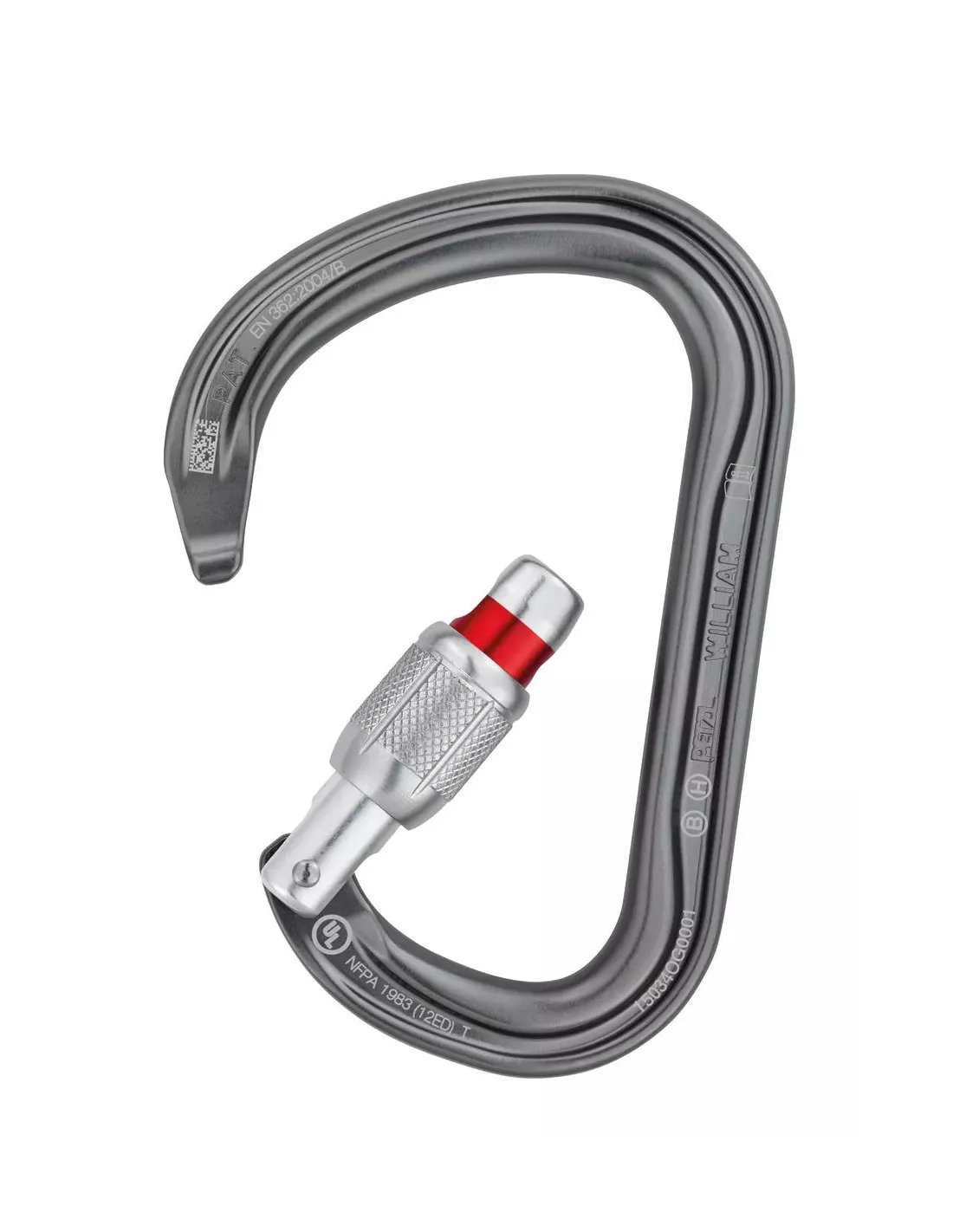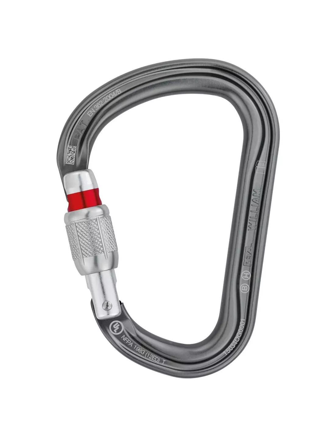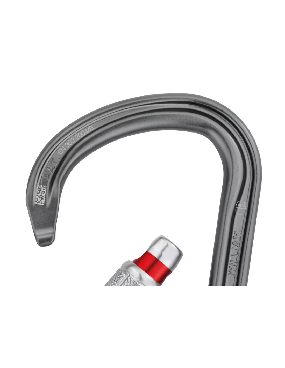 The WILLIAM asymmetrical large-capacity aluminum carabiner has a pear shape that is practical for easily connecting multiple items. The ergonomic shape and Keylock system make it easy to handle, even when wearing gloves. The William carabiner is manual Screw-Lock system.