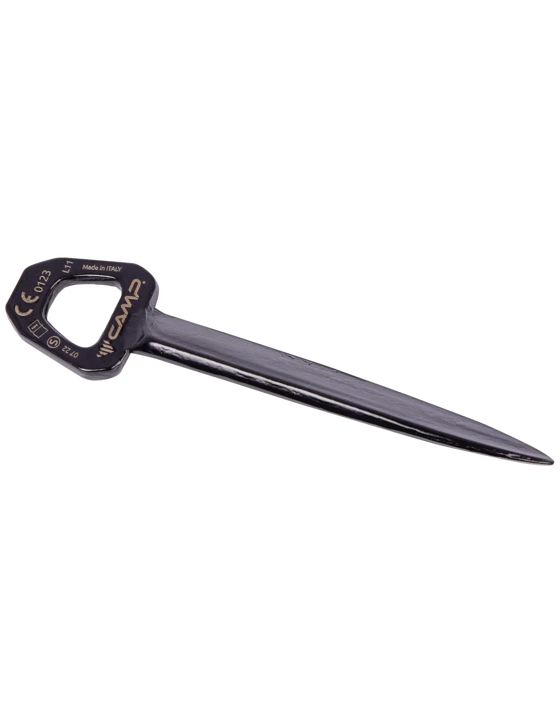 The pointed wedge shape of the Universal piton fits the most common cracks. A 45° angled head applies torque to maximize holding power for both vertical and horizontal placements.